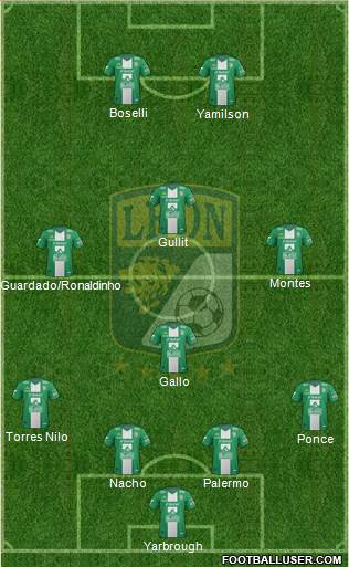 Yarbrough · Nacho · Palermo · Ponce · Torres Nilo · Gallo · Guardado/Ronaldinho · Montes · Gullit · Yamilson · BoselliAunque Torres Nilo y Ponce no estan en el equipo, pienso que le pueden aportar mucho a la defensa. El Club puede cambiarlos por jugadores como Edwin o el Chema, que no estan rindiendo como deberian, pero son muy buenos aparte de tener el palmar de Bicampeones. El Bombazo sería el volante izquierdo. Prefiero a Ronaldinho por que es mi ídolo, es un astro internacional y resuelve partidos con una jugada. En caso de que Queretaro no lo vendiera, Guardado seria la otra opción. Tiene desborde, liderazgo y es muy reconocido. Este fichaje se podria pagar con lo que se consigui de la venta de Rafa Márquez, que seguramente fue mucho dinero.
