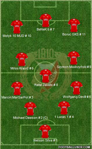 Nelson Silva # 1 · Michael Dawson # 2 (C) · 1 Lucas 1 # 4 · Marcin MarGarPol # 3 · Wolfgang Devill # 6 · Rafał Jakobi # 8 · Milos Krasić # 5 · Szymon Modrzyński # 9 · Motyk 10 MUD # 10 · Boruc GKS # 11 · BeNeK 5 # 7xD