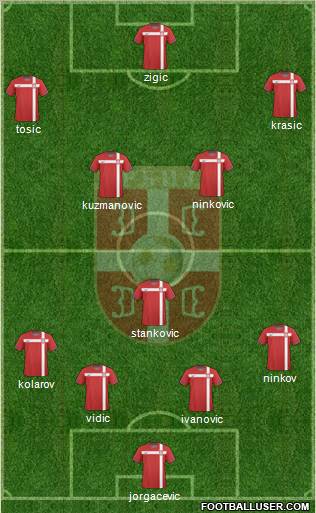 jorgacevic · ivanovic · vidic · kolarov · ninkov · stankovic · kuzmanovic · ninkovic · tosic · krasic · zigicvery attacking formatio,in defence team play 4-5-1,very disciplined team