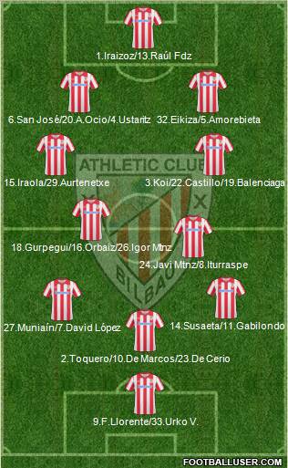9.F.Llorente/33.Urko V.2.Toquero/10.De Marcos/23.De Cerio