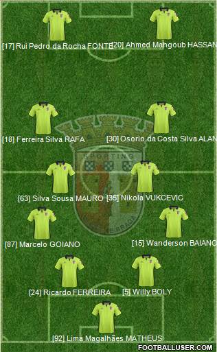 O onze de Braga : Matheus - Baiano , Boly , Ferreira , Marcelo Goiano - Alan , Vukcevic , Mauro , Rafa - Hassan , Fonte