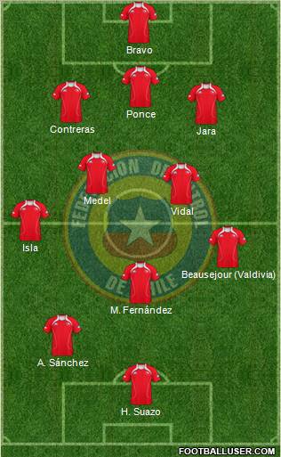 H. Suazo · A. Sánchez · M. Fernández · Beausejour (Valdivia) · Isla · Vidal · Medel · Jara · Contreras · Ponce · BravoFormação do Chile - Guia da Copa América 2011: http://futebol-de-selecoes.blogspot.com/