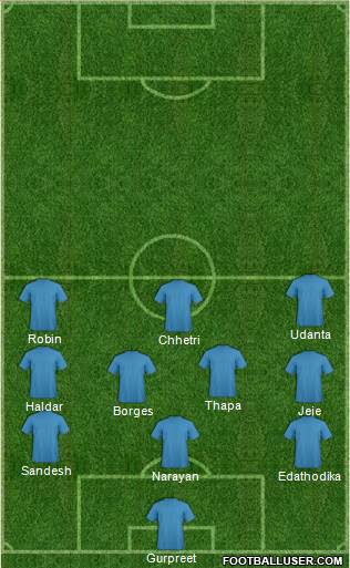 Gurpreet · Narayan · Edathodika · Sandesh · Borges · Jeje · Haldar · Thapa · Chhetri · Robin · UdantaI have dreamt that India would win the Fifa World Cup.This formation is my favourite and players also.