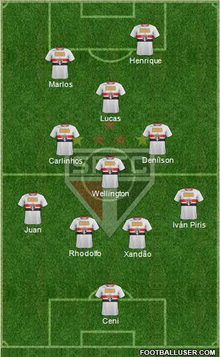 Ceni · Xandão · Rhodolfo · Juan · Iván Piris · Wellington · Carlinhos · Denílson · Lucas · Marlos · HenriqueNo 2° tempo tira Henrique põe Willian, tira Marlos põe Rivaldo.