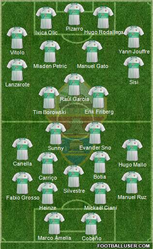 Cobeño · Marco Amelia · Heinze · Mickaël Ciani · Fabio Grosso · Manuel Ruz · Silvestre · Carriço · Botia · Hugo Mallo · Canella · Sunny · Evander Sno · Tim Borowski · Erik Friberg · Raúl García · Lanzarote · Sisi · Mladen Petric · Manuel Gato · Vitolo · Yann Jouffre · Ivica Olic · Hugo Rodallega · PizarroCoach: Unai Emery.