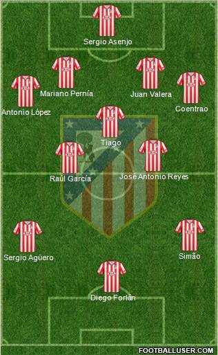 Diego Forlán · Sergio Agüero · Simão · Raúl García · José Antonio Reyes · Tiago · Antonio López · Coentrao · Juan Valera · Mariano Pernía · Sergio AsenjoJ'espere avoir cette équipe sur 3 saisons maxi