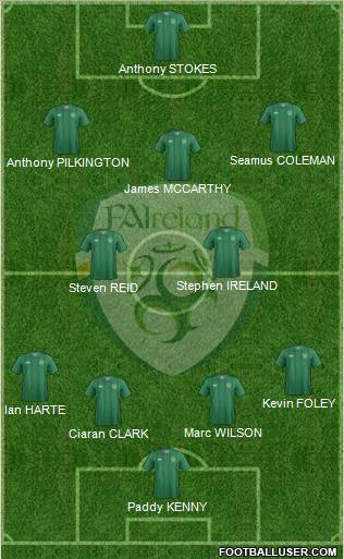 Paddy KENNY · Ciaran CLARK · Marc WILSON · Ian HARTE · Kevin FOLEY · Steven REID · Stephen IRELAND · James MCCARTHY · Anthony PILKINGTON · Seamus COLEMAN · Anthony STOKESRep.Ireland team of players not going to Euro 2012.