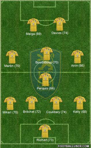 Richert (73) · Mikari (70) · Coulibaly (74) · Bréchet (72) · Kelly (68) · Perquis (66) · Martin (70) · Anin (66) · Boudebouz (70) · Maiga (69) · Davies (74)Remplaçants: