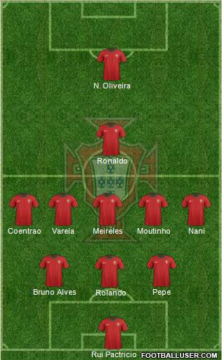 Rui Pactricio · Rolando · Bruno Alves · Pepe · Coentrao · Varela · Meireles · Moutinho · Nani · Ronaldo · N. OliveiraWhat Portugal should have played against Spain in Euro2012....