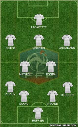 RUFFIER · SAKHO · VARANE · DEBUCHY · CLICHY · MATUIDI · POGBA · RIBERY · GRENIER · GRIEZMANN · LACAZETTE