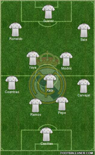 Casillas · Ramos · Pepe · Carvajal · Coentrao · Xabi · Modric · Yaya · Bale · Ronaldo · Suarez