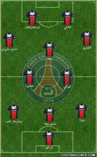 سرغيو · تياجو سيلفا · رودريغز دايس · موتا · فيراتي · خضيرة · ماتا · عدنان يانوزاي · لافيتزي · ابراهيموفيتش · كافاني