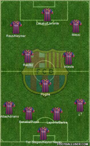 Ter Stegen/Keylor Navas · Laporte/Bartra · Benatia/Piqué · Alba/Adriano · ¿? · Pogba · Iniesta · Rakitic · Reus/Neymar · Messi · Lukaku/Llorente