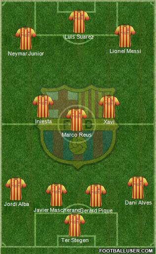 Ter Stegen · Gerard Pique · Javier Mascherano · Jordi Alba · Dani Alves · Marco Reus · Xavi · Iniesta · Neymar Junior · Lionel Messi · Luis Suarez