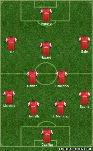 Casillas · Humells · J. Martínez · Sagna · Marcelo · Rakitic´ · Paulinho · Hazard · Cr7 · Bale · Aguero