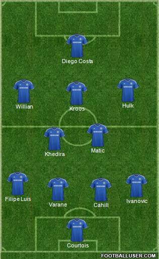 Courtois · Cahill · Varane · Ivanovic · Filipe Luis · Khedira · Matic · Kroos · Willian · Hulk · Diego Costa