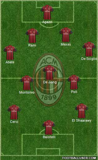 Balotelli · Cerci · El Shaarawy · Montolivo · Poli · De Jong · Abate · De Sciglio · Rami · Mexes · Agazzi