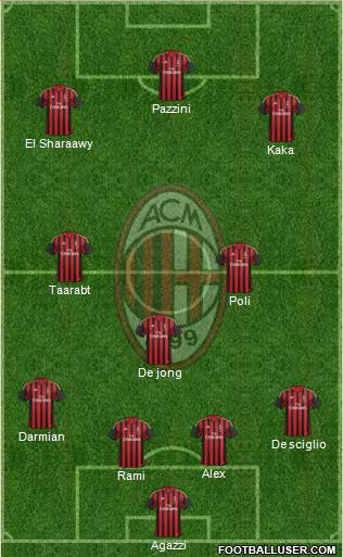 Agazzi · Rami · Alex · De sciglio · Darmian · De jong · Poli · Taarabt · Kaka · El Sharaawy · Pazzini