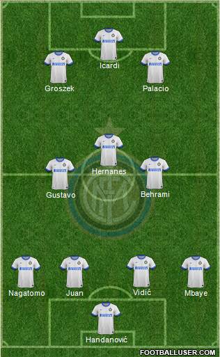 Handanović · Nagatomo · Juan · Mbaye · Vidić · Gustavo · Behrami · Hernanes · Groszek · Palacio · Icardi