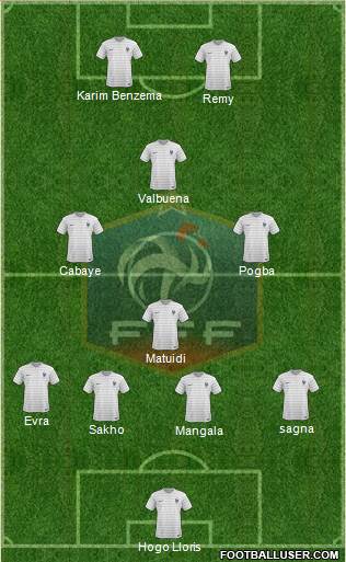 Hogo Lloris · Mangala · Sakho · sagna · Evra · Matuidi · Cabaye · Pogba · Valbuena · Remy · Karim Benzema