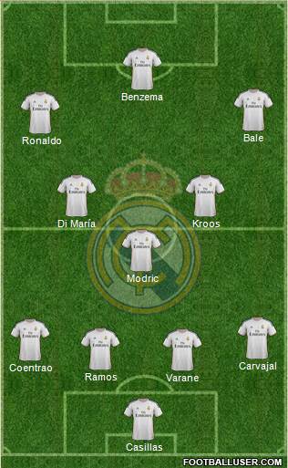 Casillas · Varane · Ramos · Coentrao · Carvajal · Modric · Di María · Kroos · Ronaldo · Bale · Benzema