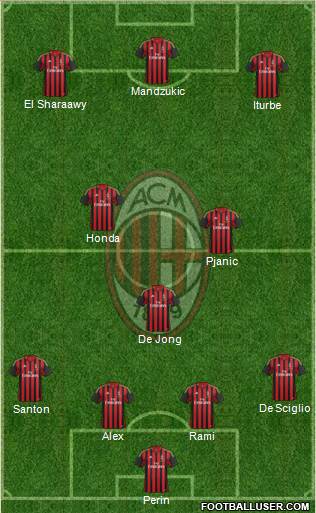 Perin · Alex · Rami · Santon · De Sciglio · De Jong · Pjanic · Honda · Iturbe · El Sharaawy · Mandzukic