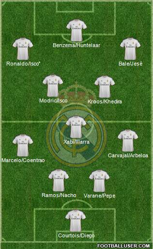 Courtois/Diego · Varane/Pepe · Ramos/Nacho · Marcelo/Coentrao · Carvajal/Arbeloa · Xabi/Illarra · Kroos/Khedira · Modric/Isco · Ronaldo/Isco'' · Bale/Jesé · Benzema/HuntelaarMi paji-plantilla