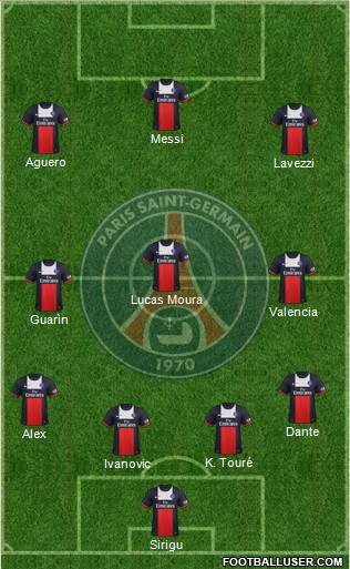 Sirigu · Ivanovic · K. Touré · Alex · Dante · Guarìn · Valencia · Lucas Moura · Lavezzi · Aguero · Messi