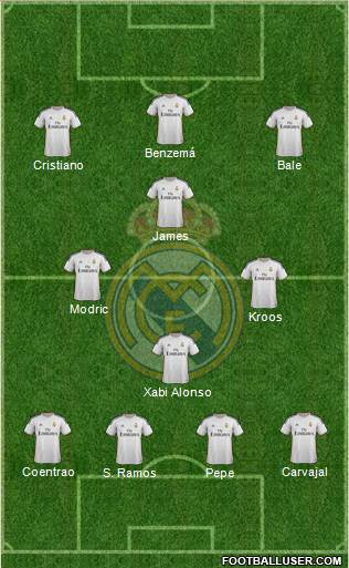 S. Ramos · Pepe · Coentrao · Carvajal · Xabi Alonso · Kroos · Modric · James · Cristiano · Bale · Benzemá