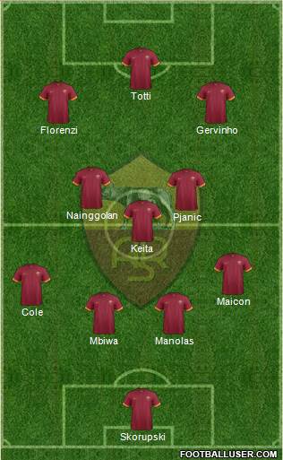Skorupski · Mbiwa · Manolas · Cole · Maicon · Keita · Pjanic · Nainggolan · Florenzi · Gervinho · Totti
