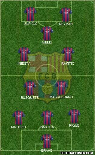 BRAVO · MATHIEU · BARTRA · PIQUE · BUSQUETS · MASCHERANO · INIESTA · RAKITIC · MESSI · NEYMAR · SUAREZ