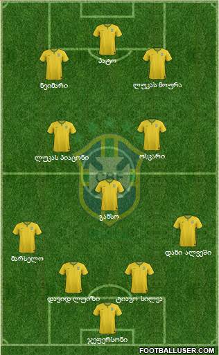 ჯეფერსონი · დავიდ ლუიზი · ტიაგო სილვა · მარსელო · დანი ალვეში · განსო · ლუკას პიაცონი · ოსკარი · ნეიმარი · ლუკას მოურა · პატო