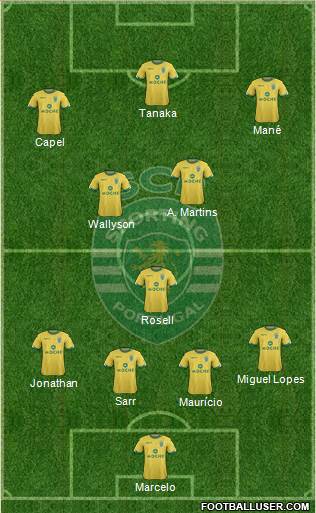 Marcelo · Maurício · Sarr · Jonathan · Miguel Lopes · Rosell · Wallyson · A. Martins · Capel · Mané · Tanaka