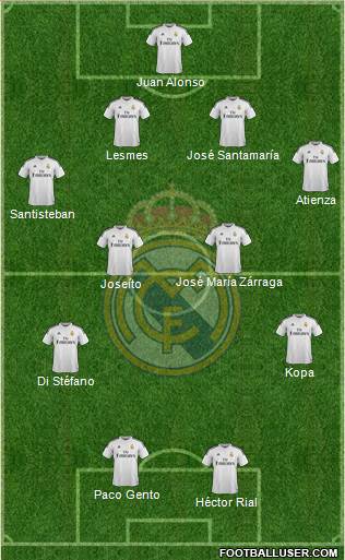 Juan Alonso · Lesmes · José Santamaría · Atienza · Santisteban · José María Zárraga · Joseíto · Kopa · Di Stéfano · Paco Gento · Héctor Rial