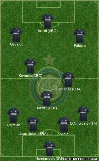 Handanovic (SVN) · Vidic · Juan Jesus (BRA) · Darmian · D'Ambrosio (ITA) · Medel (CHL) · Hernanes (BRA) · Kovacic (CRO) · Palacio · Osvaldo · Icardi (ARG)Only a full back (mandatory) addition.