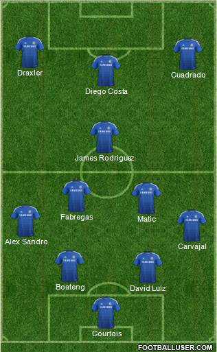 Courtois · David Luiz · Boateng · Carvajal · Alex Sandro · Matic · Fabregas · James Rodriguez · Diego Costa · Cuadrado · DraxlerMy Chelsea Career Mode Dream Team