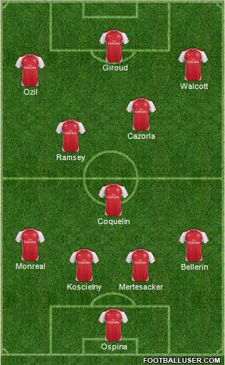 Ospina · Koscielny · Mertesacker · Bellerin · Monreal · Coquelin · Ramsey · Cazorla · Ozil · Walcott · Giroud