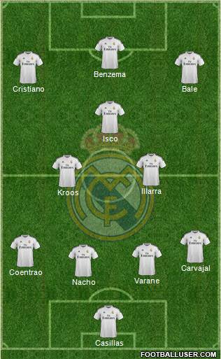 Casillas · Nacho · Varane · Coentrao · Carvajal · Kroos · Illarra · Isco · Cristiano · Bale · Benzema