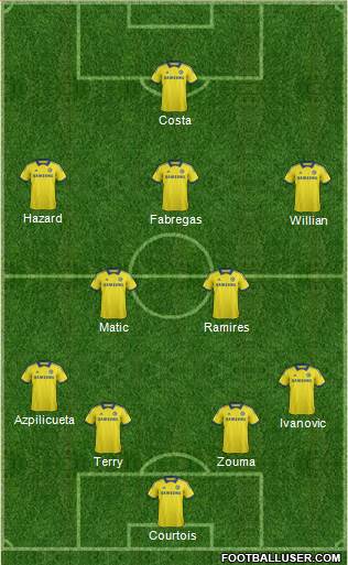 Courtois · Terry · Zouma · Ivanovic · Azpilicueta · Matic · Ramires · Willian · Fabregas · Hazard · Costa