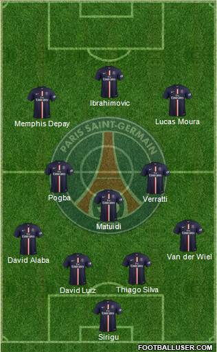 Sirigu · David Luiz · Thiago Silva · David Alaba · Van der Wiel · Matuidi · Verratti · Pogba · Memphis Depay · Lucas Moura · Ibrahimovic