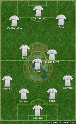Casillas · Varane · Pepe · Marcelo · Carvajal · Kroos · Lucas Silva · Isco · Cr. Ronaldo · Bale · Benzema