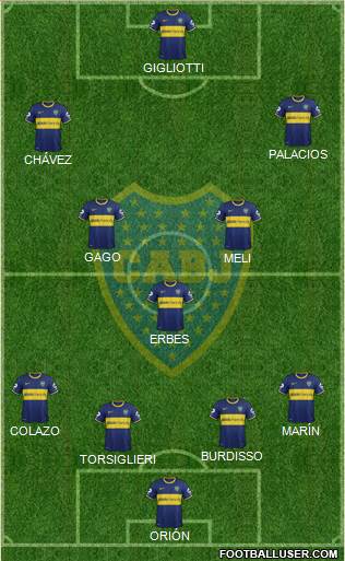 ORIÓN · TORSIGLIERI · BURDISSO · COLAZO · MARÍN · ERBES · MELI · GAGO · CHÁVEZ · PALACIOS · GIGLIOTTI