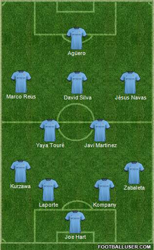 Joe Hart · Laporte · Kompany · Zabaleta · Kurzawa · Yaya Touré · Javi Martinez · David Silva · Jésus Navas · Marco Reus · Agüero