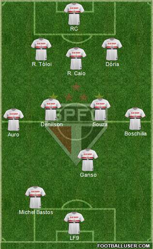RC · R. Tóloi · Dória · R. Caio · Denilson · Souza · Boschilia · Auro · Ganso · Michel Bastos · LF9