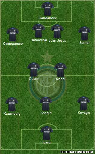 Handanoviç · Ranocchia · Juan Jesus · Santon · Campagnaro · Guarin · Medel · Kovaçiç · Shaqiri · Kuzamoviç · Icardi