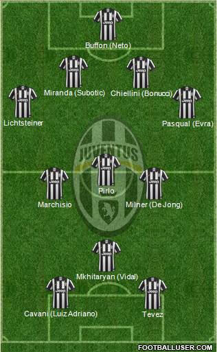 Tevez · Cavani (Luiz Adriano) · Mkhitaryan (Vidal) · Marchisio · Milner (De Jong) · Pirlo · Pasqual (Evra) · Lichtsteiner · Chiellini (Bonucci) · Miranda (Subotic) · Buffon (Neto)