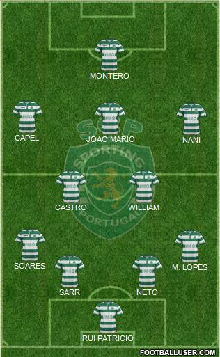 RUI PATRICIO · SARR · NETO · M. LOPES · SOARES · CASTRO · WILLIAM · NANI · JOAO MARIO · CAPEL · MONTERO
