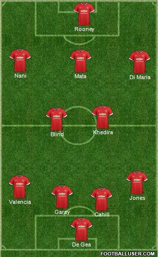 De Gea · Cahill · Garay · Valencia · Jones · Blind · Khedira · Di Maria · Mata · Nani · Rooney