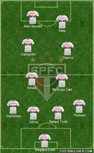 Rogério Ceni · Dória · Rafael Tolói · Carlinhos · Hudson · Rodrigo Caio · Souza · Ganso · Centurión · Pato · Alan Kardec