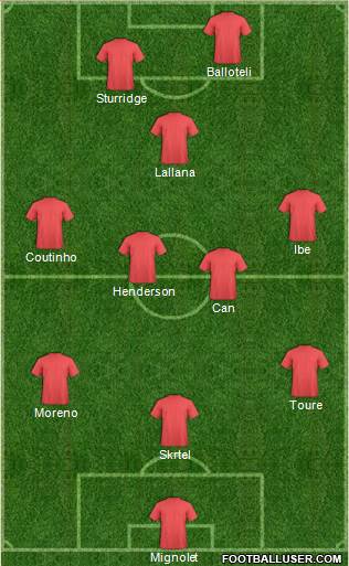 Mignolet · Skrtel · Moreno · Toure · Can · Henderson · Coutinho · Ibe · Lallana · Sturridge · Balloteli